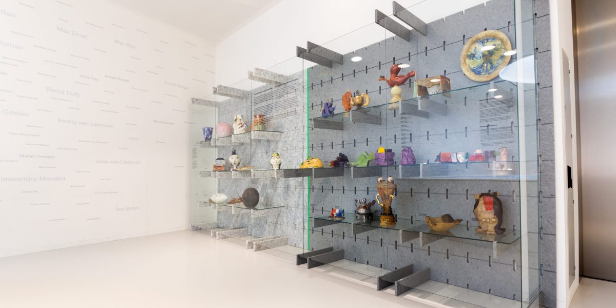 In de keramiekkast op de 2e verdieping van het museum is een selectie van keramische werken te zien die verzameld zijn door Jan van Haaren. Je ontdekt werk van Nederlandse keramisten als Etie van Rees en Jan van der Vaart, maar ook van grote Europese namen als Lucie Rie en Lucio Fontana.