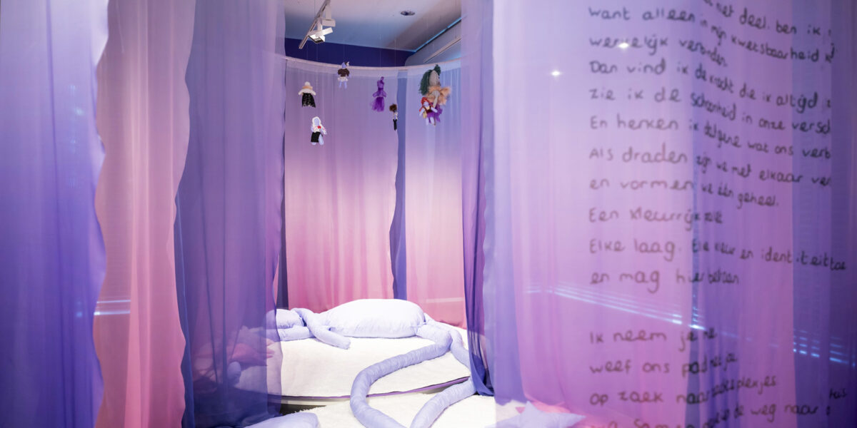 De afgelopen drie maanden hebben elf jongeren uit het netwerk van jongerenwerkorganisatie PowerUp073 samen met modeontwerper Baby Reni gewerkt aan Soft Spaces: Dug–out. Het resultaat is een ruimte vullende installatie waarin onderwerpen als neurodiversiteit, seksisme, racisme, identiteit, gender en mentale gezondheid een plekje krijgen.